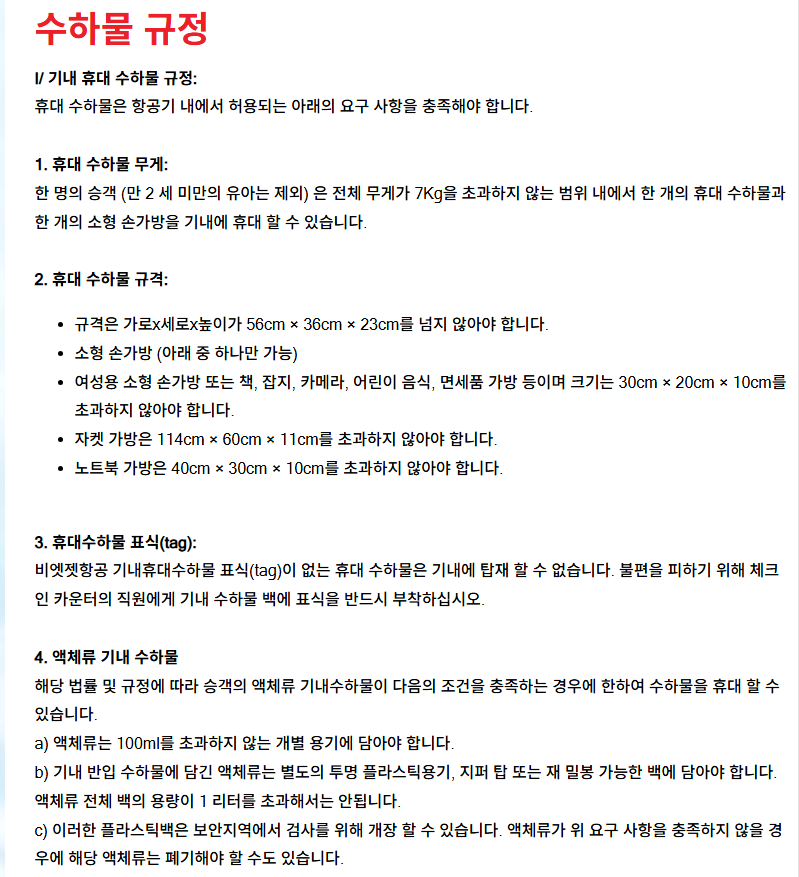 <참고: 비엣젯항공 사이트 수하물 규정>